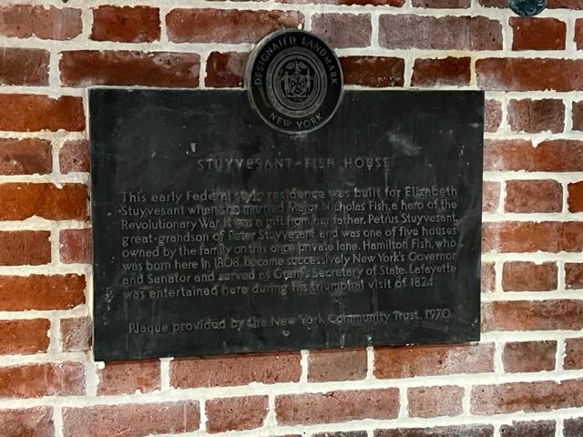 The Hamilton Fish is a brick Federal style house was built by Peter Stuyvesant, the great-grandson of Petrus Stuyvesant, the Dutch Governor of New Amsterdam, in 1804. It was a wedding present to his daughter, Elizabeth and his son in law, Nicholas Fish and their future son, Hamilton Fish, the former Governor, Senator of New York State and Secretary of State under the President Grant administration. The house was built on land that had been in the family since the 17th century (Wiki). This union united two famous and influential families and the house stayed in the family until the beginning of the 20th century.