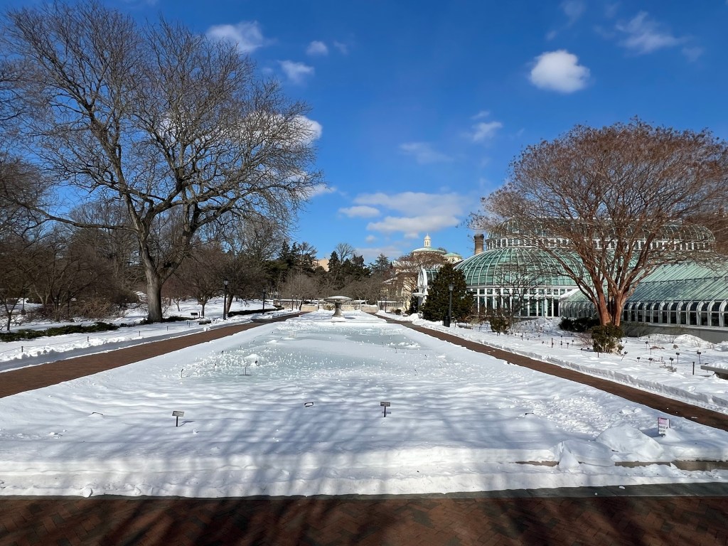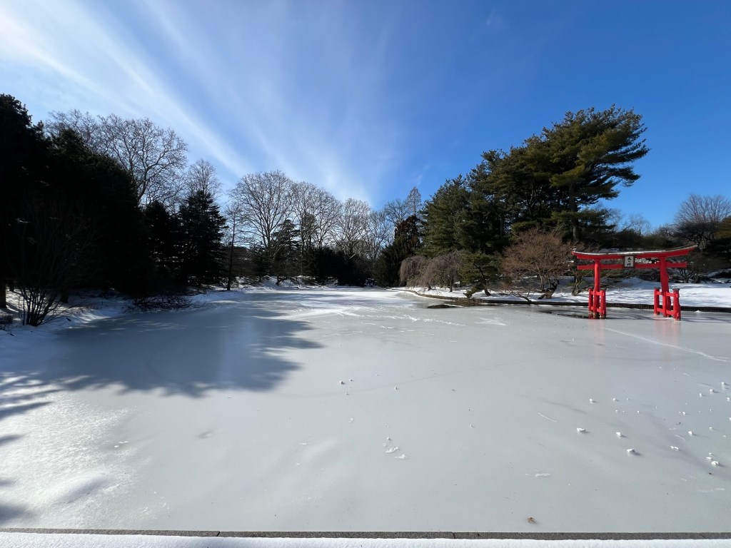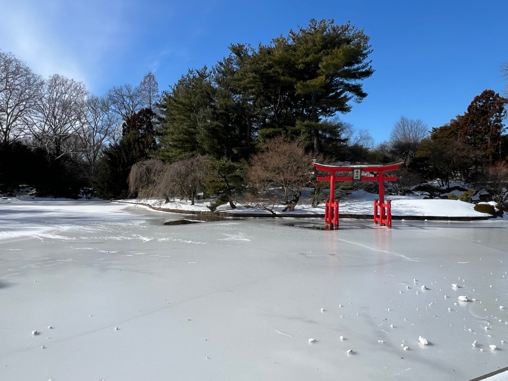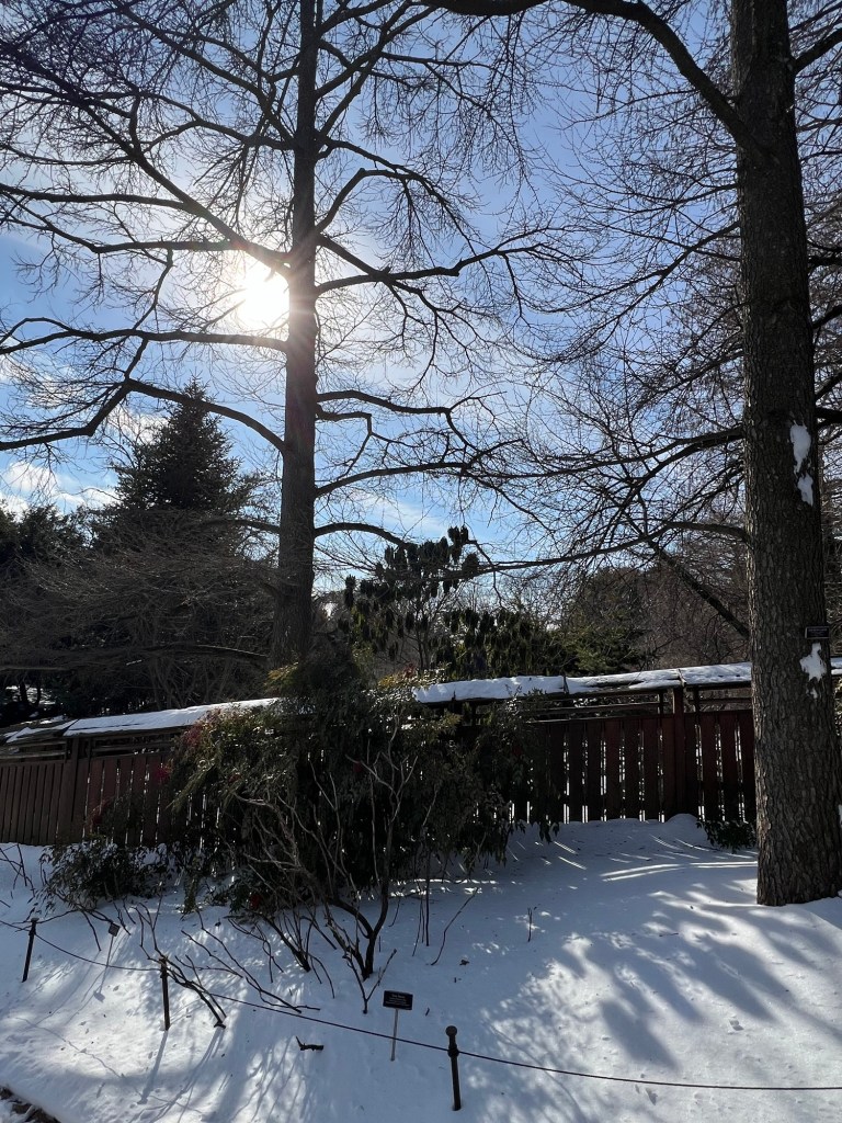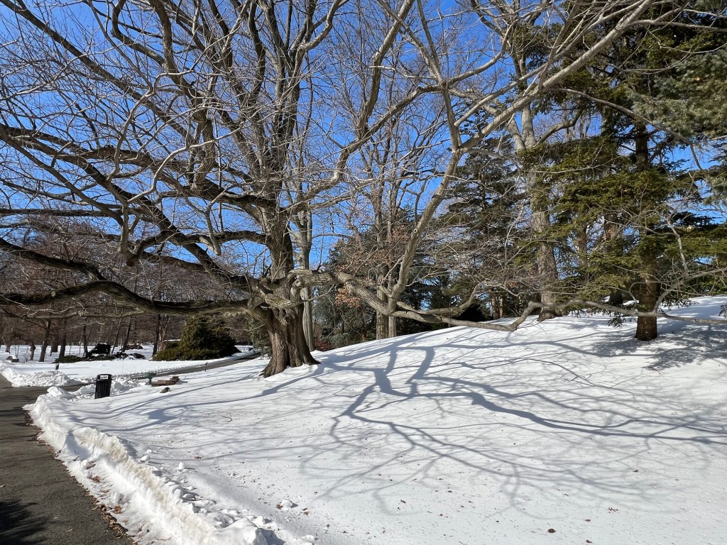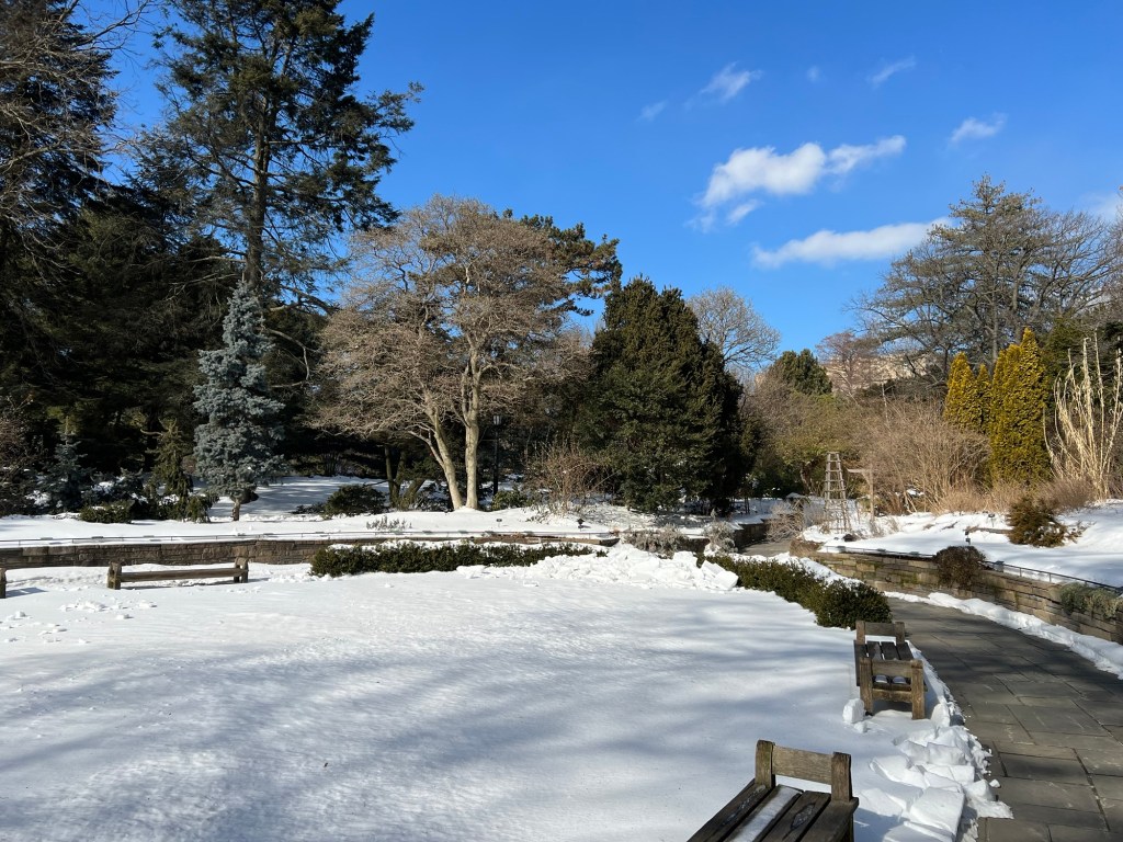 Since I had a couple of hours until my tour of the exhibit, I decided to tour the Brooklyn Botanic Garden next door. There were no walking tours that day and the gardens were under a foot of snow from the recent storm. There was a quiet beauty of all the snow and the way it fell and shined in the sun all over the gardens. There were no lines or crowds (like the recent lightshow a few weeks earlier), so I had the gardens pretty much to myself.