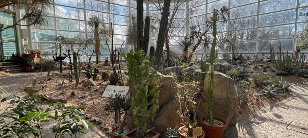 Walking back through the Desert Gallery before exiting to tour the snow covered gardens