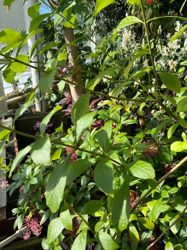 The flowering tiers of plants in the Tropical room