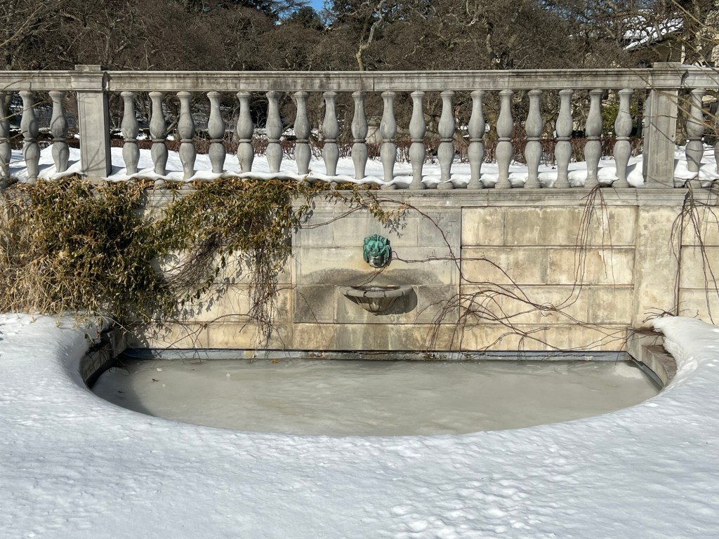 The Rose Garden Fountain in the winter