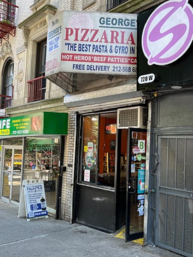 I stopped for lunch at George’s Pizza at 726 West 181st Street, a well-known pizzeria that has been around since 1960. They have a great lunch special of two giant slices and a can of soda for $5.00 and the pizza here is really good. The pizza maker makes a nice sauce, and it has a rich flavor to it. It was a nice lunch.