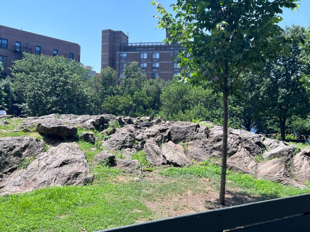 What’s nice about the little park between the streets is the rock formations similar to the one you will see around 190th Street harking back to a time that this area was dominated by rocky hills not paved smooth by roads and housing developments. There is a natural beauty to this park.