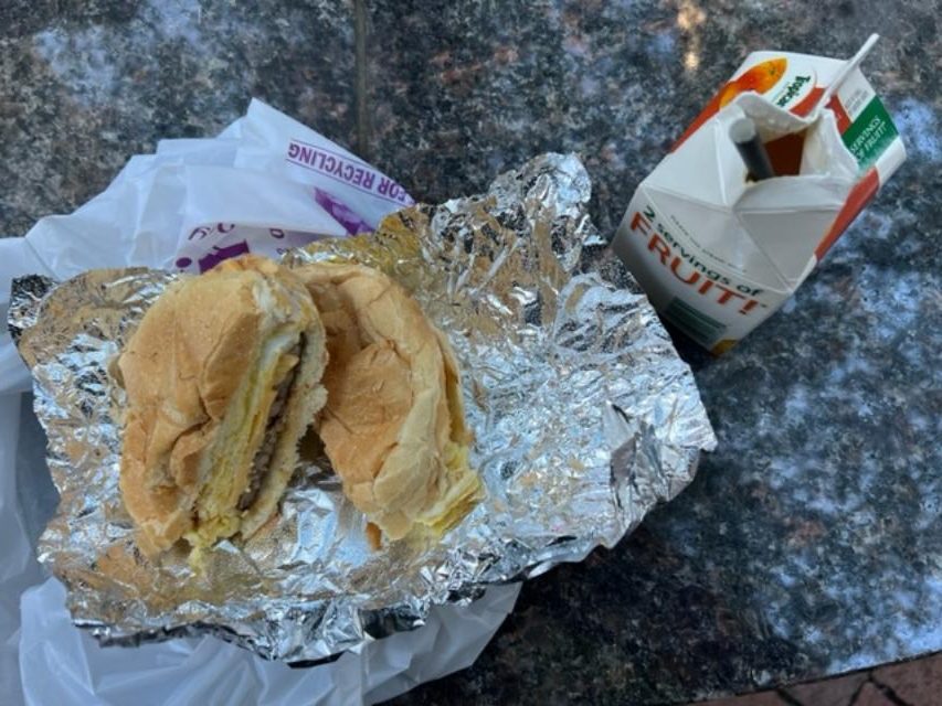During a break in the walking, I stopped by the West Side Cafe at 218 West 72nd Street for the noted Sausage, Egg and Cheese bagel ($3.95) that I ate in Riverside Park. I had seen someone eating it the other day and had to have it. It was well-worth the visit and the sandwich were big and warmed me up with every bite on this cool day.