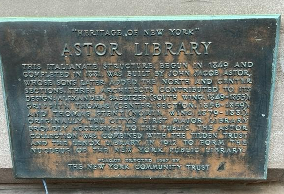 The next stop was across the street at the Astor Library at 425 Lafayette Street.