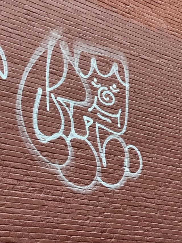 I saw this Halloween looking Frankenstein graffiti on one of the walls before we left the neighborhood. I thought this was cool.