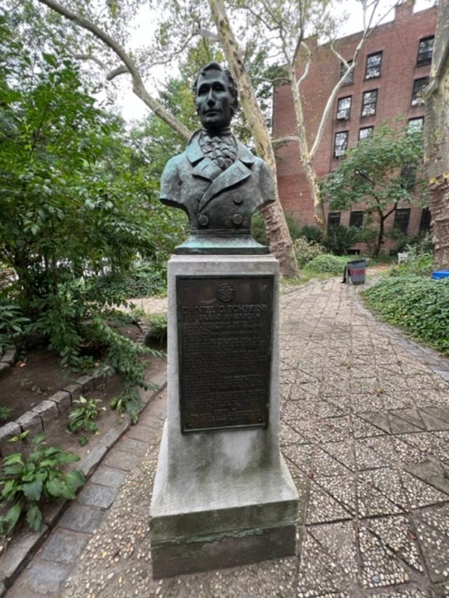 The Daniel Tompkins statue in the gardens at St. Mark’s Church.