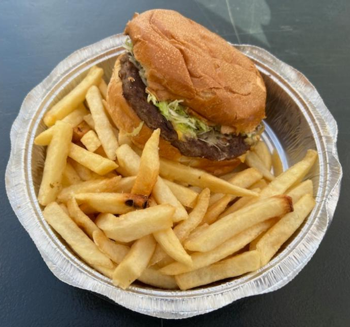 The Cheeseburger Deluxe at Park Terrace Deli is caramelized and juicy