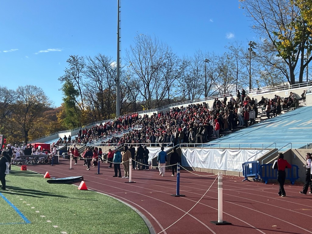 This was the Cornell side of the stadium at the end of the Third Quarter even with these scores