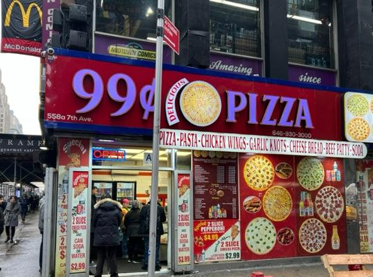 99 Cents Pizza at the corner of Seventh Avenue and 40th Street at 143 West 40th Street