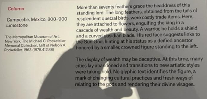 Since I had seen most of the museum in the past and time was limited (I had about an hour and a half), I decided to spend my time at the new “Mayan Exhibition-The Lives of the Gods-Divinity in Maya Art”.