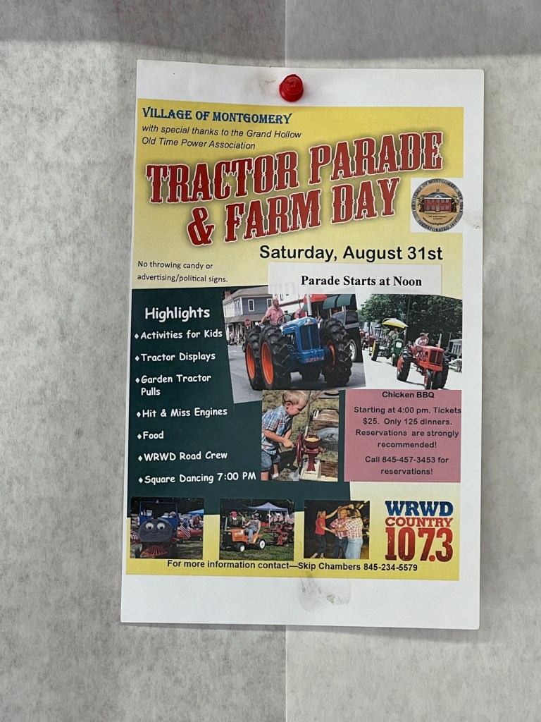 The Tractor Parade in Montgomery, NY takes place each year at the end of August.