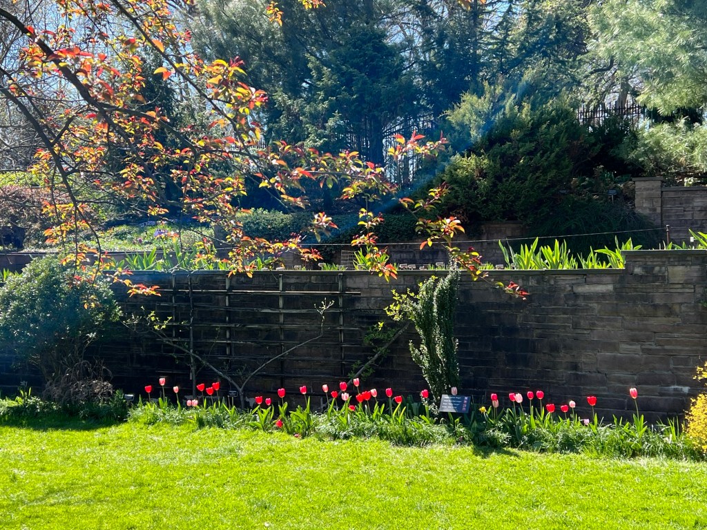 The Cranford Rose Gardens is truly magnificent in June when all the roses are in bloom but for now, the beds that lined the sides of these gardens had tulips and daffodils in full bloom.