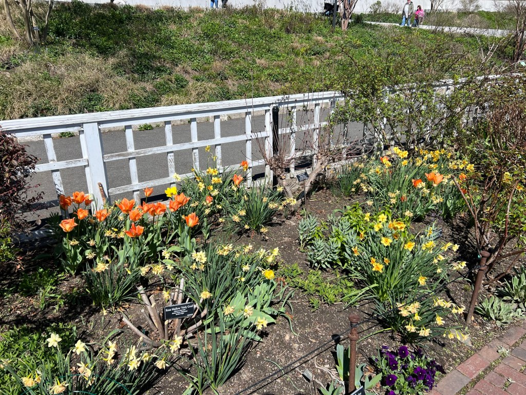 The tulips and daffodils in the Cranford Rose Garden