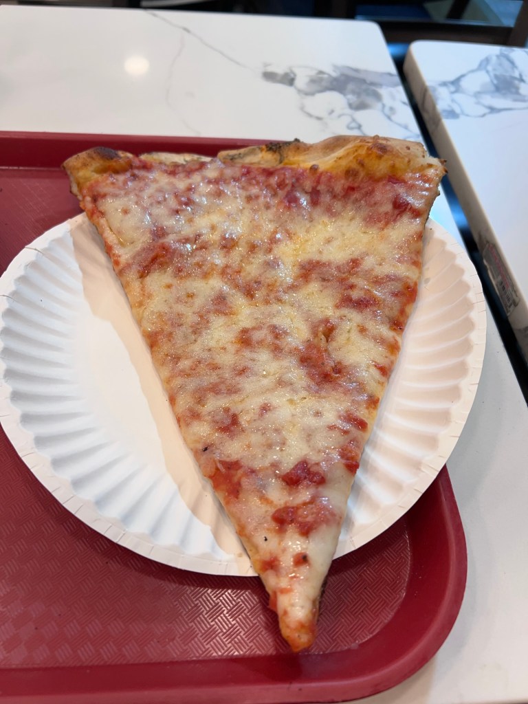 The red sauce which is the base of the pizza gave the Cheese slice lots of flavor