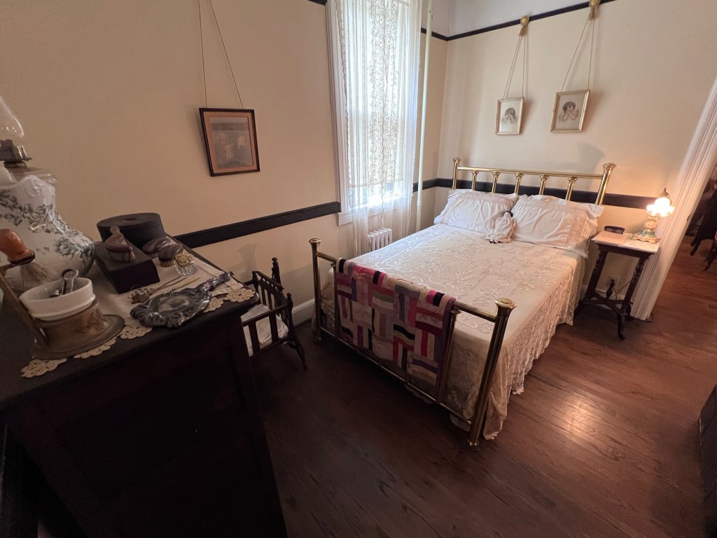 This room, which was actually the girls bedroom has been recreated to resemble where Maria and Pietro slept. The dresser is set with brushes, combs and mirrors that are from the period. The Botto’s slept in a brass bed.