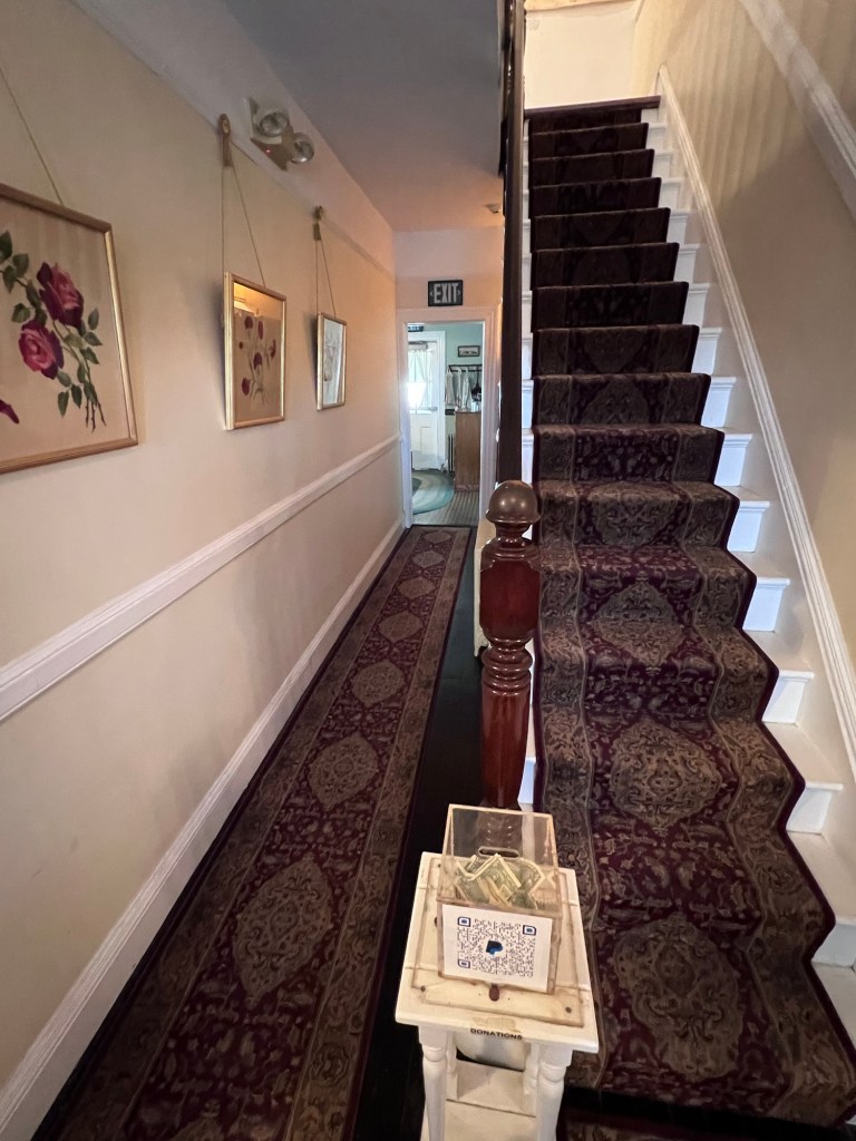 Here she made meals for her family, did her jarring and preserving and the washing was done. Then a tour of the dining room, bedroom and the palour area where the family met and greeted people. The upstairs was formerly two apartments that were built to help ‘pay the bills’.