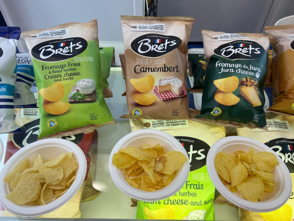 In the French Pavilion, the first brand I highly recommend is the potato chip brand Simply Gourmand brand Brets, whose crispy flavorful snacks were the best potato chips at the show. in the Snack Food category, I thought they were the best I tasted. With their unique flavors, the best being the Camembert Cheese and the Miel Moutarde, the honey Dijon mustard flavors and colorful packaging, were outstanding. I had to beg the vendor for two bags to take home to sample. The crispy fried French potatoes were perfectly flavored and salted and they filled the bag with chips and not air like American companies.
