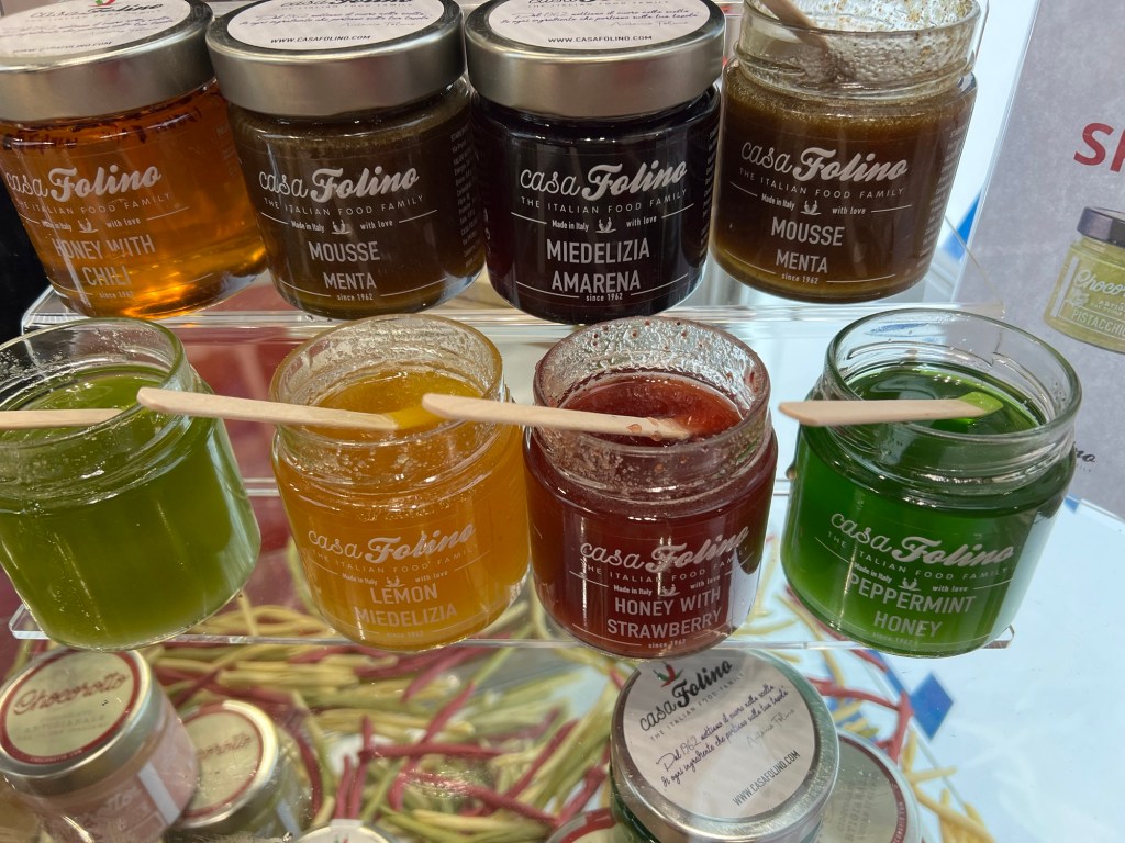 in the Italian Pavilion, there were many honey products being sampled at the show but the best flavored honey was from Casa Folino were stood out for flavor and packaging.