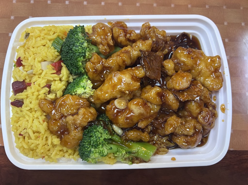 The Chicken in a Sweet and Tangy sauce with Fried Rice made up for the fried stuff.