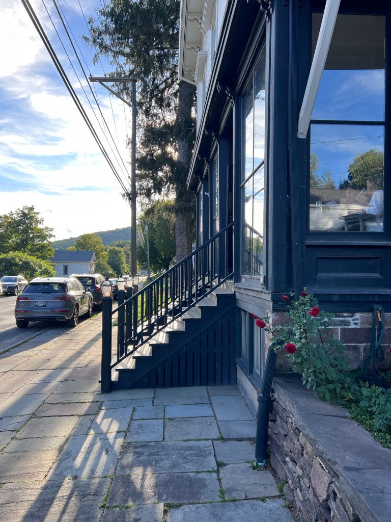 By the time I got there at 5:30pm, most of the stores had closed for the night. The town has its usual drug stores and small restaurants but look closer and you will see the traces of Brooklyn that I kept reading about. You can walk the downtown in about a half hour but really look at the views. In the middle of the downtown, there is a gap between the store fronts and you have a little park that looks over the river and it is picturesque. What a beautiful view of the river valley below and the mountains in the background. I can see what inspires the artists to move up here. It reminded me of Woodstock with its boutique shops and small art galleries.