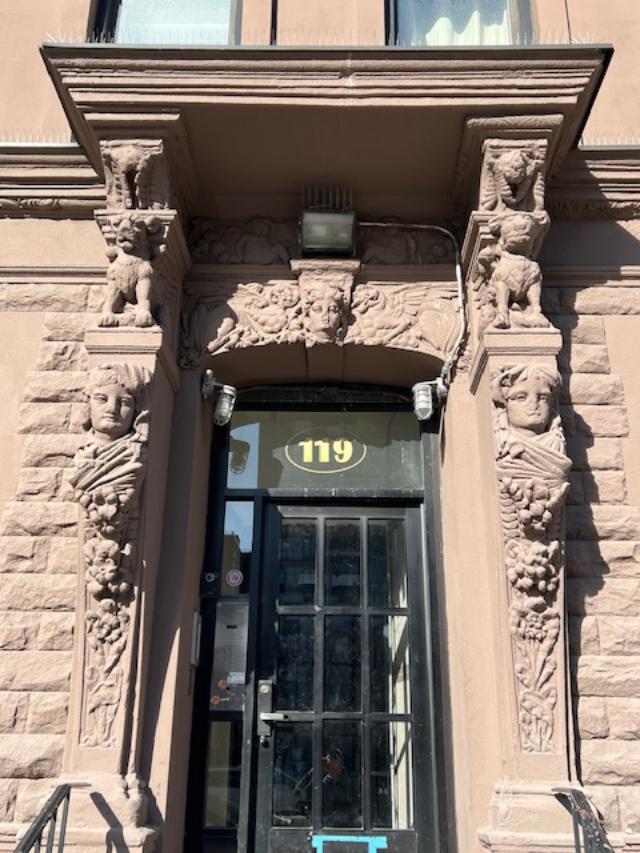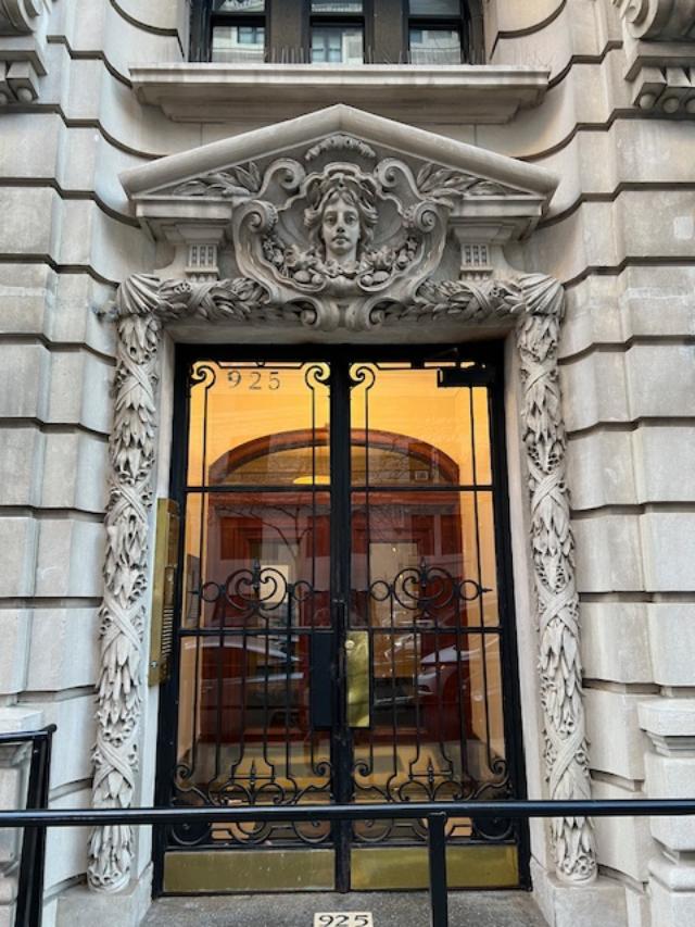 The doorway entrance to 925 West End Avenue with its beautiful carvings