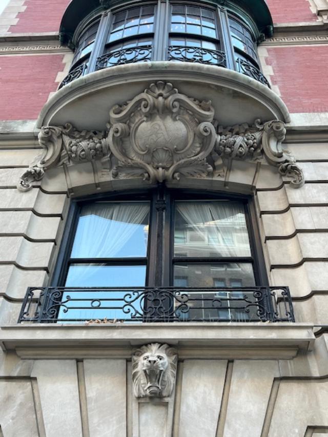 It is a marble building where you see numerous faces and animals carved into the marble. There are two similar buildings like this in the neighborhood but this one is most spectacular. Look at the grill work and the windows and it will make you fall in love again with the treasures that the city offers.