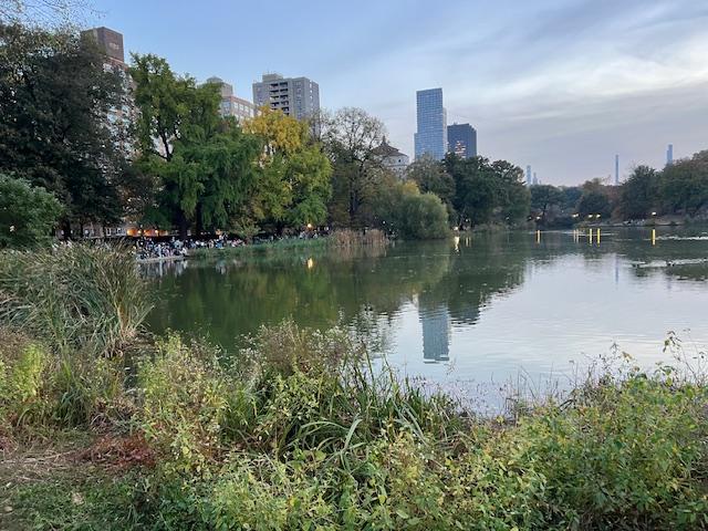 The pond and the waterfall in Morningside Park in the Fall of 2024