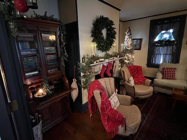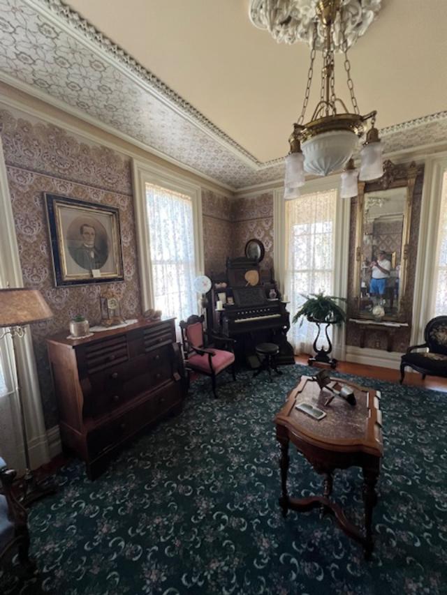 The room was set up for dining and amusements. The Lincoln Crib is in the background.