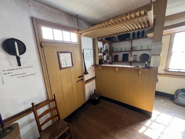 The home consists of two small downstairs room filled with period furniture and decorations and there is an upstairs with three small rooms that have just opened up to the public. The front room Mr. Hughes used as a tavern that he kept open until almost the 1800’s. He had catered to a growing whaling industry that needed some form of entertainment in this quiet town that was isolated from the rest of the state.