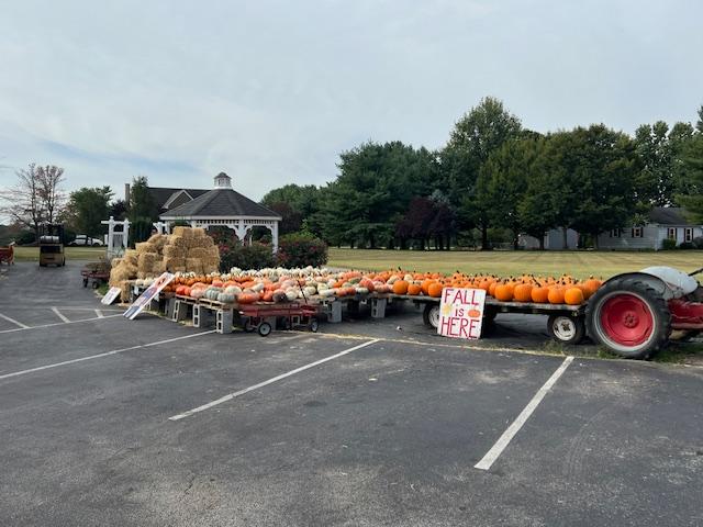 While I was at the picnic tables, I read the trivia questions in the large pumpkin while watching the tractors drive by.