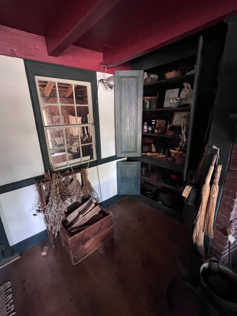 The back room is a closed off kitchen with a fireplace and spinning wheels and wash tubs, all the things to run a household. There were also children’s toys, kitchen and garden gadgets and family items to personalize the house.