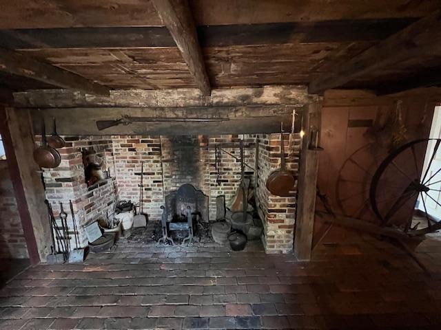 The inside of the house is decorated for a family that owns a prosperous farm in Upper Manhattan. The kitchen was set for a late afternoon lunch and the bedrooms were designed for the family and their guests.