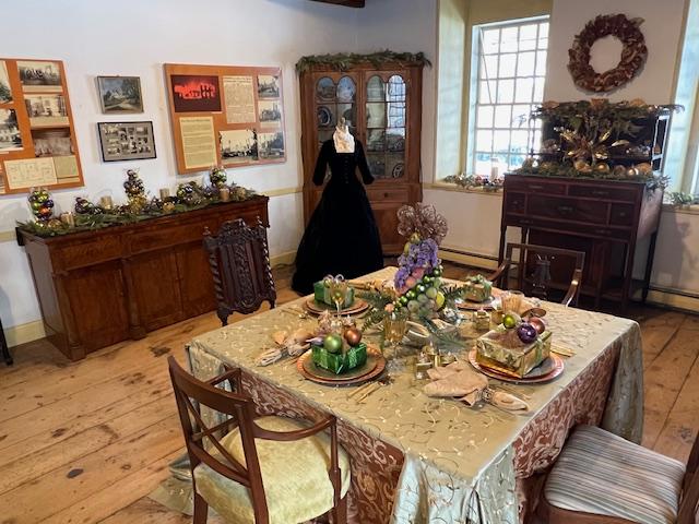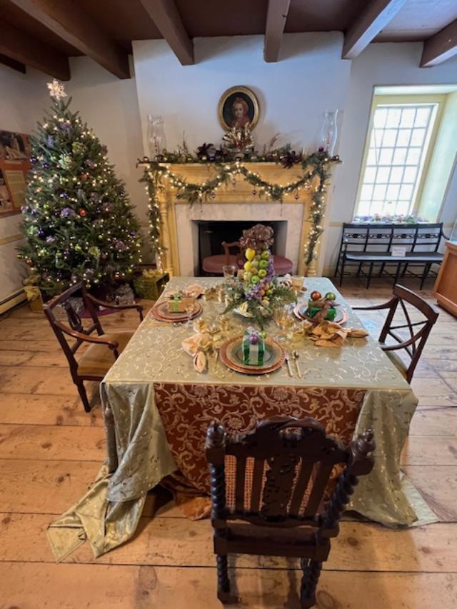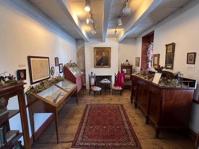 The palour at the Van Cortlandt House was decorated with garlands and berries and the outside of the home was covered with wreathes.