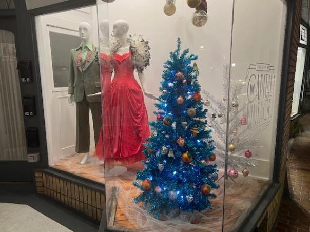 The skulls and pumpkins in the window. The merchants get quite creative at the holidays in the downtown area.