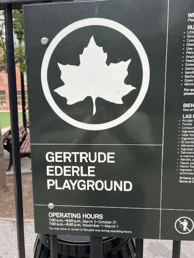 As I walked back down to West 59th Street, I crossed the street to a popular park. Near the local school is Gertrude Ederle Playground which sits next to the Gertrude Ederle Recreation Center. This park stretches from West 59th to West 60th Street and is a very popular park with the areas families offering many whimsical playground jungle gyms and swings and a very nice field for soccer and baseball. It also offers a very nice public bathroom that is nice to have when walking around the area.