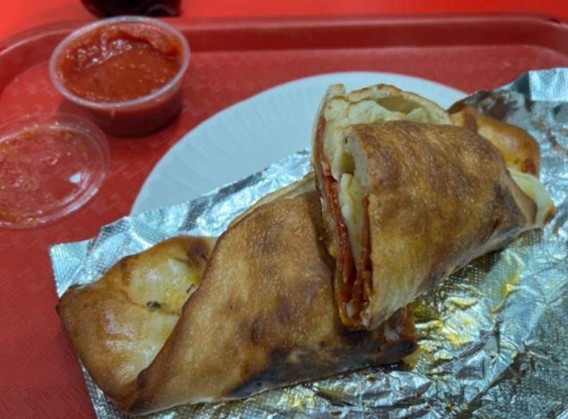I settled on a Pepperoni Roll ($5.95), which was an excellent choice. This version of a rolled personal pizza was studded with layers of spicy pepperoni and baked with a garlic butter topping and then served with a spicy tomato sauce. I have not had one of these in years and it was delicious (see my review on TripAdvisor and DiningonaShoeStringinNYC@Wordpress.com). Each bite into those layers of pepperoni had a salty/savory flavor and was the perfect lunch for a long day of walking.