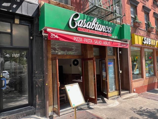 Amore Pizza Cafe at night at 370 West 58th Street at Ninth Avenue