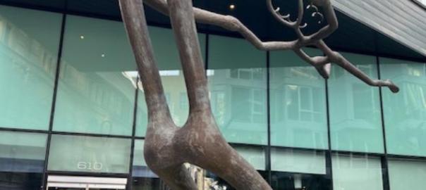 In front of the Executive Hotel Le Soleil New York at 38 West 36th Street, there is an interesting sculpture on the front terrace by artist Marie Khouri that looks like a tear drop. The sculpture. “Histoire d’O”, was created in 2016 and there are many different versions of it all over the world, this one prominently sitting in front of the hotel. Its beauty is in its curvature.