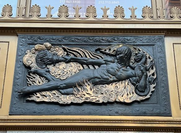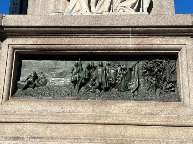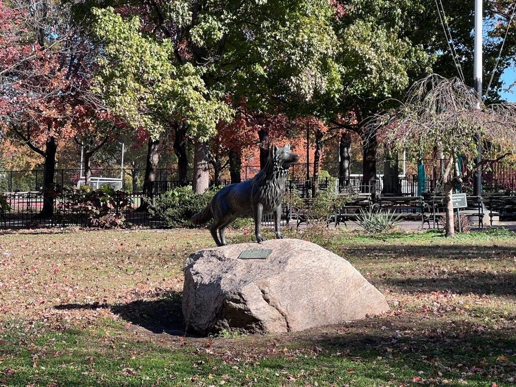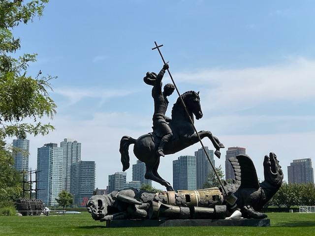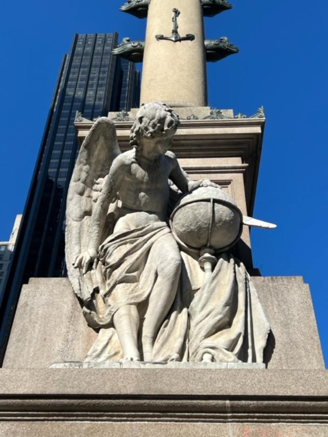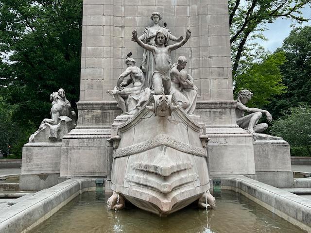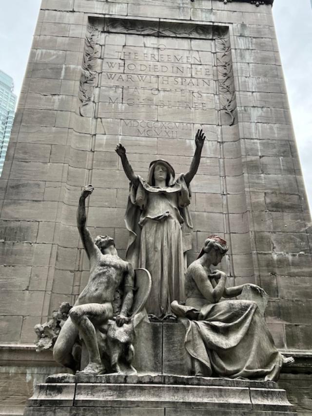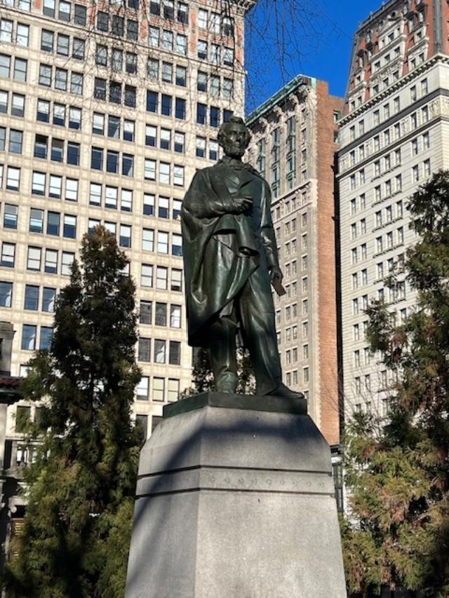 In 2023, we lucked out this year versus last year when it rained all day. I had never been so drenched. This year it was so nice. It was bright, sunny and crisp in the morning, perfect to start the walk. When we began at 7:00am, I got my hat, pin and off I went. Since I had the new iPhone to take pictures, I was stopping by all the statuary so that I could update my older blogs on “The Great Saunter” and on walks in those neighborhoods. I got some really great shots in of sculptures along the West Side of the Island of Manhattan.