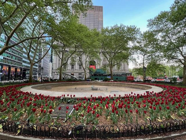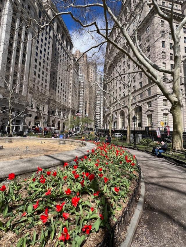 Bowling Green Park at Broadway and Whitehall Street at the height of its beauty in the Spring of 2024.