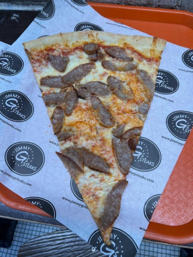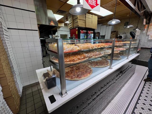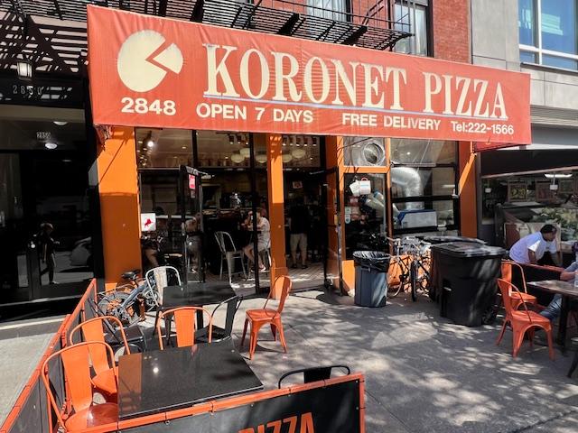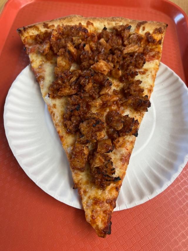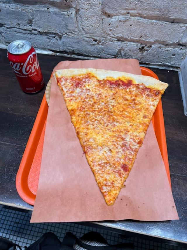 When I got inside, all that was left was a salad that had seen better days and there was no dressing to it and some portobella mushroom burgers (Yuck!). I did not want to eat any mushy mushrooms. By that point at 1:30pm, everyone was heading up to the Levien Gymnasium where the game was taking place and I was starved, so I walked to Koronet Pizza on Broadway to have one their giant slices. I forgot how giant the slices are there.