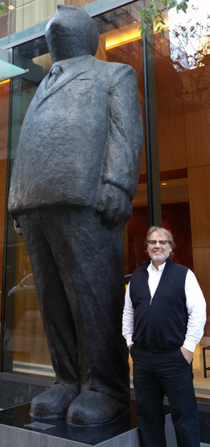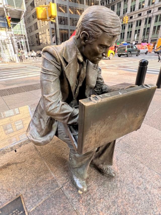 Artist John Seward Johnson II is an American born artist and a member of the Johnson & Johnson family. A self-taught sculptor he is known for his life like cast sculptures. This famous statue was formerly in Liberty Plaza Park by the World Trade Center.