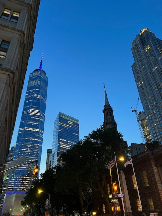 Downtown Manhattan at the end of the walk in 2024. It was just about twilight.