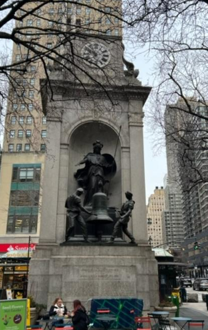 Another historic statue located in Zuccotti Park is the sculpture “Double Check Businessman” that had survived the attacks on 9/11. The sculpture by John Seward Johnson II was created in 1982 and depicted a businessman reading himself to enter the World Trade Center nearby when it was made. It survived the attacks of 9/11 and was a symbol of those businesspeople who died that day.