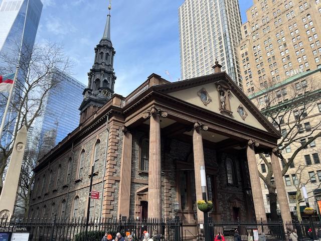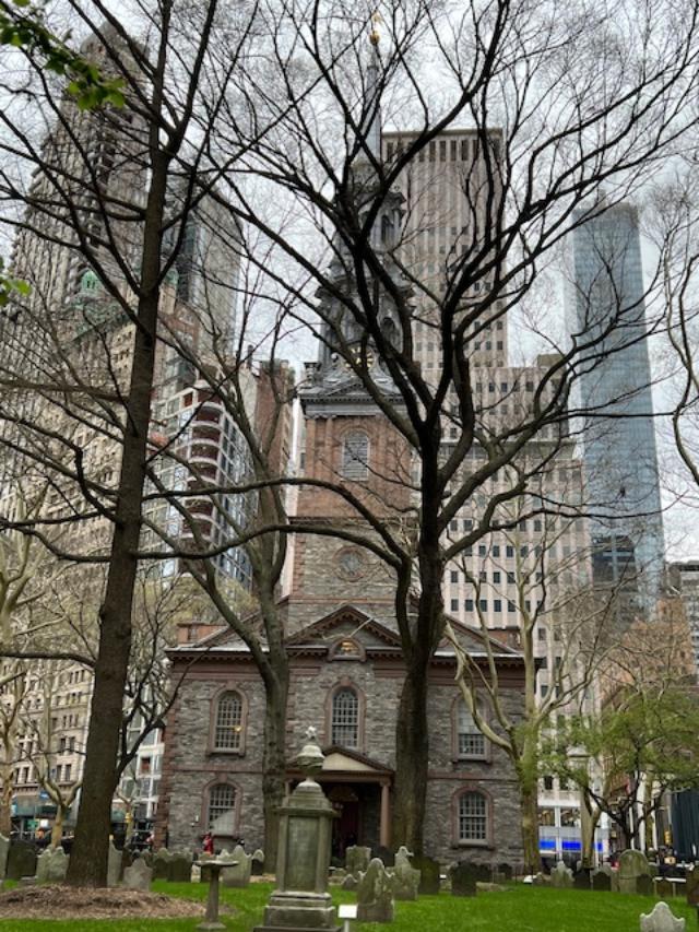 The last historic church I have visited and have walked past many times when in the neighborhood is Trinity Church, an Episcopal church at 75 Broadway. The first church on the site was built in 1698 and burned during the Revolutionary War during the Great Fire of 1776 when two thirds of the City burned after a fire started in tavern and left most of New Yorkers homeless (Wiki).