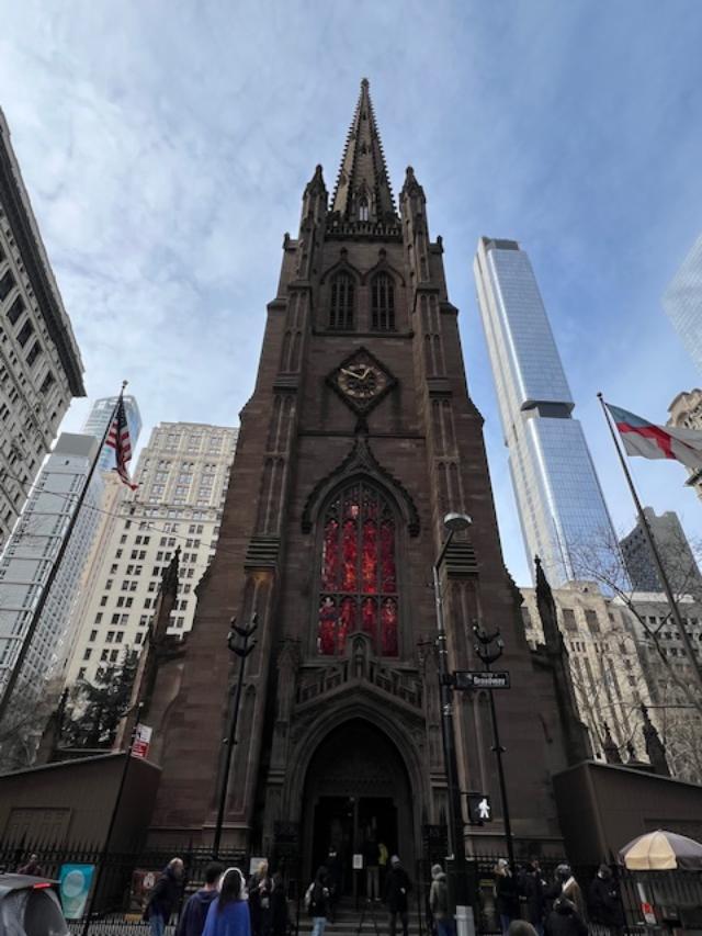 The current church was built in 1839 and finished in 1846 and was built in the Gothic Revival design by architect Richard Upjohn. It was the tallest building in the United States until 1869. The church has played important roles in recent history as a place of refuge and prayer during the attacks on 9/11. It also was part of the Occupy Wall Street movement in 2012 as a place of refuge and support to the protesters (Wiki and Church History).