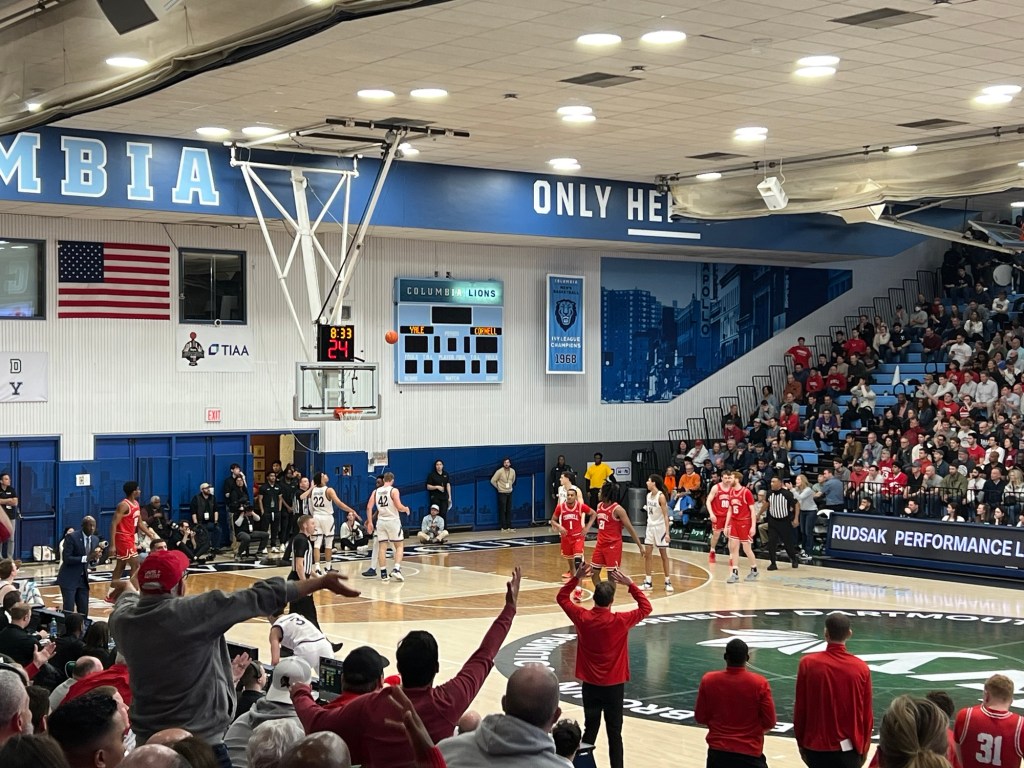 The place was mostly a sea of red and white with the Yale Alumni tucked into two sets of the gym. Our band and cheerleaders were on top of the bleachers yelling and screaming. At that point were behind by ten points when I arrived in the first half of the game.