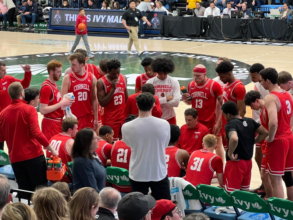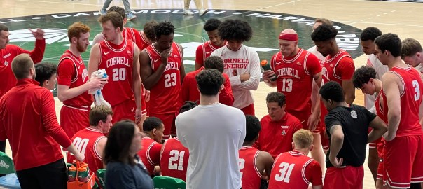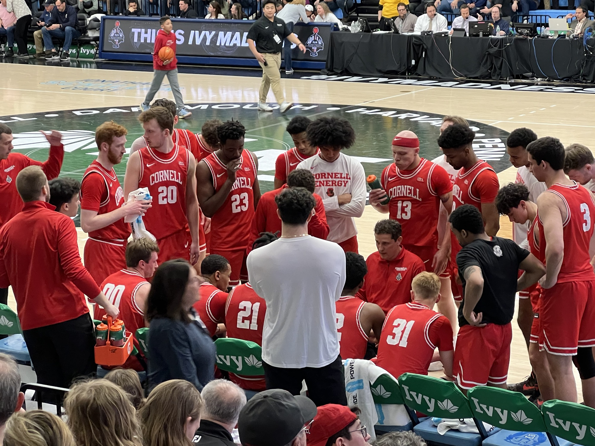 The Cornell Team in the huddle during the first half of the beginning of the game.