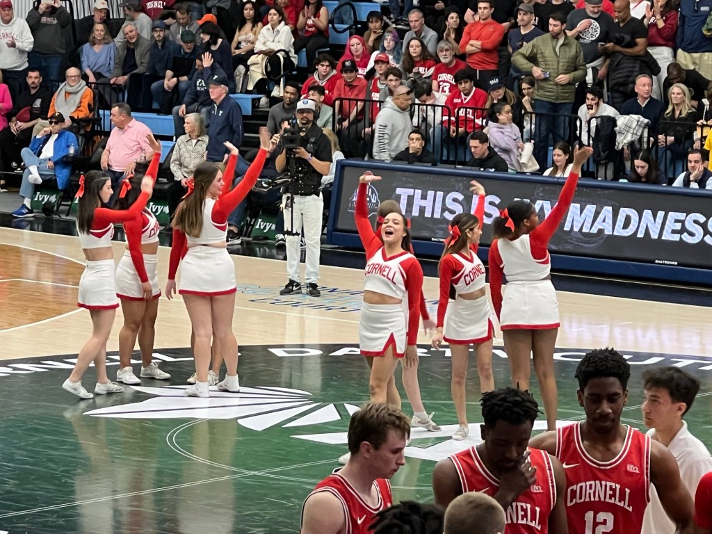 The Cornell Cheerleaders leading the way to a hopeful comeback and victory in the second half of the game.